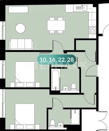 Apartment: 1 BR 50.45 sq.m., 13 floor in the project Colliers Yard - Bankside
