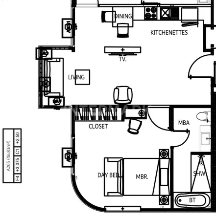 Apartment: 1 BR 40.00 sq.m., 2 floor in the project Bellevue Beachfront